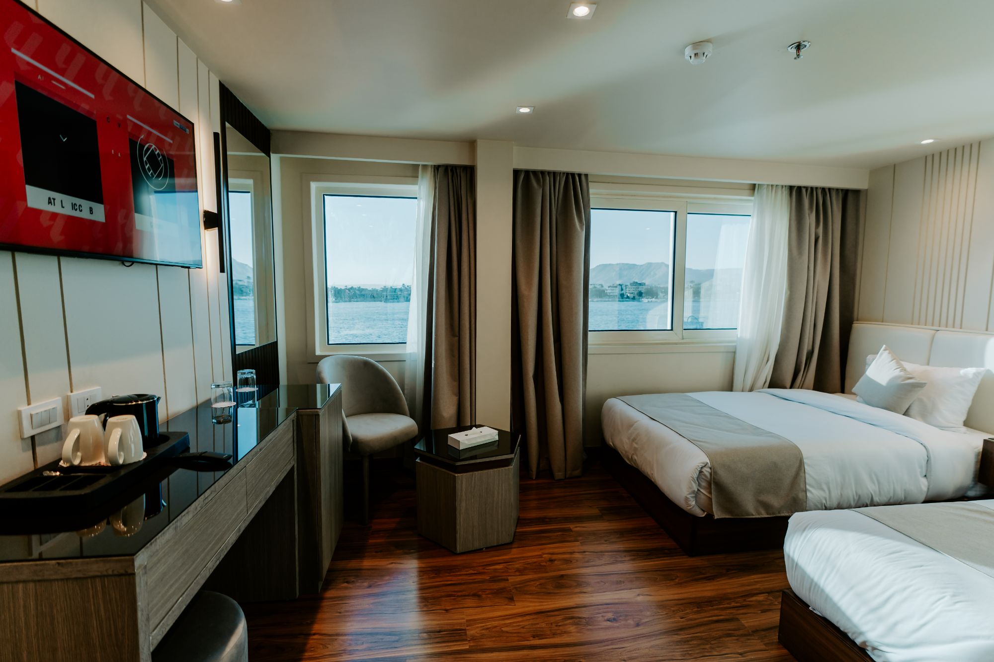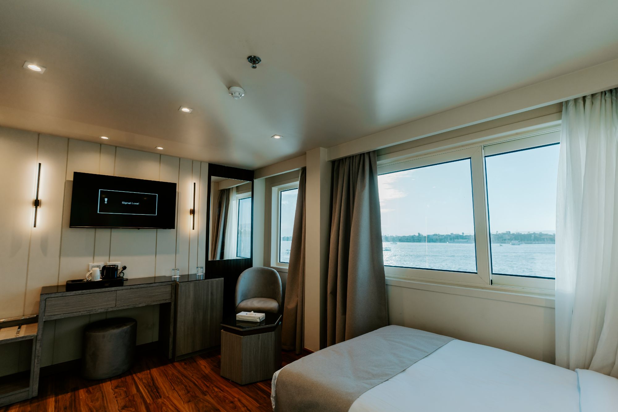 All cabins and suites on MS Golden Nile cruise have private bathroom with shower and hairdryer. The cabins equipped with mini bar and air conditioner with control. They also equipped with telephone and television with internal video system. Moreover, the cabins also equipped with satellite channels and sound system. They also feature music system and individual safe deposit box. Read the cruise reviews, details and itineraries. Check out the cruise prices and book Golden Nile cruise Now!